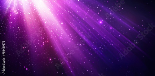 Fototapeta premium Radiant purple light beams with sparkling particles on dark background...