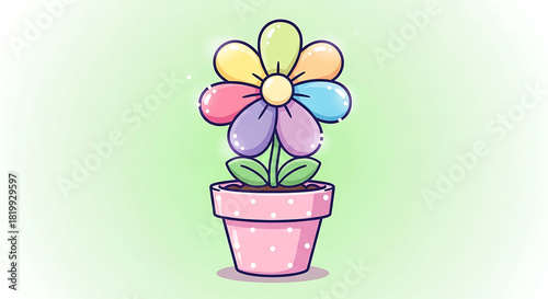 Obraz premium Radiant Rainbow Bloom A Colorful Blossom in a Charming Pot