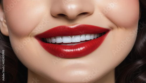 © Eliane, Fototapeta premium Radiant Smile: Close-Up of Woman with Red Lips