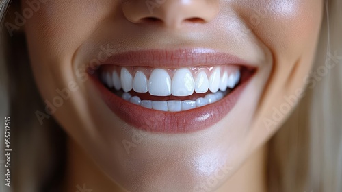 © julija, Fototapeta premium radiant smile transformation confident woman beams after dental implant procedure closeup portrait emphasizes naturallooking teeth capturing renewed selfassurance and joy