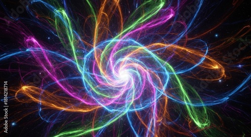 Obraz premium Radiant Spiral of Luminous Plasma Tendrils on a Dark Background.