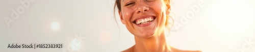© jiratip, Obraz premium Radiant subject, bright smile against pure white, portrait, lifestyle, vibrant