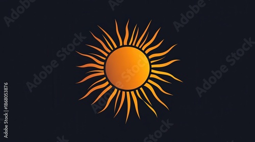 © Nitiporn, Fototapeta premium Radiant Sun on Dark Canvas: A luminous sun bursts forth against a deep, dark backdrop, its rays of light illuminating the canvas