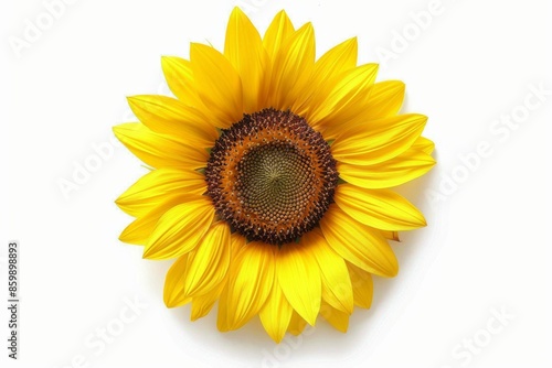 © Irfanan, Fototapeta premium Radiant sunflower close-up on white