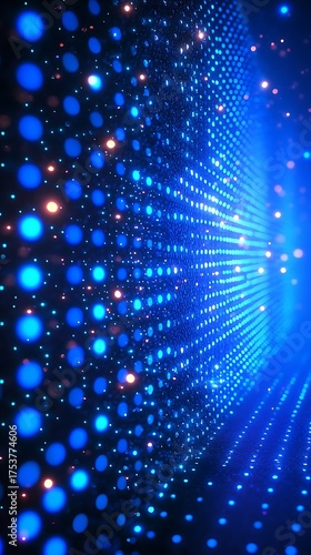 © MiltonKumar, Fototapeta premium Radiant tunnel of light with blue tech wall patterns picture