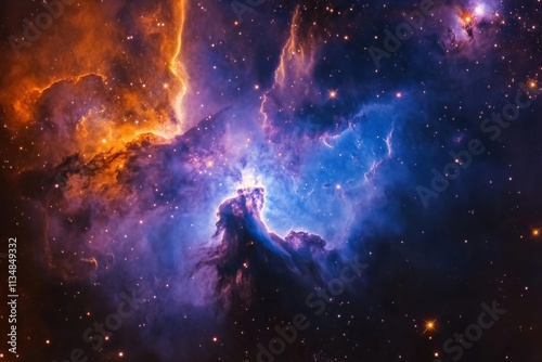 © Yevgeniy, Fototapeta premium Radiant violet and azure stellar formations amidst a nebula galaxy backdrop in deep space