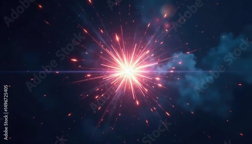 Fototapeta premium Radiant white starburst exploding outwards, bright light against dark...
