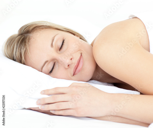 Fototapeta premium Radiant woman sleeping on her bed