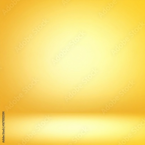 © cik, Obraz premium Radiant Yellow Studio Room with a Glowing Central Spotlight and Curved Floor.