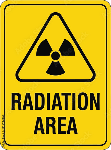 © Bacon, Obraz premium Radiation area warning sign danger symbol yellow triangle safety alert hazard caution symbol vector graphic vector