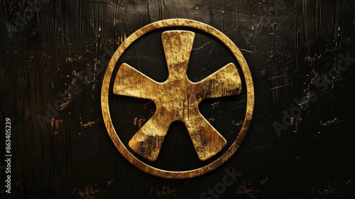 Obraz premium Radiation symbol in gold on black background with space for text ideal for...