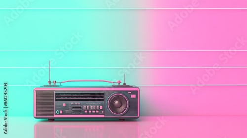 Fototapeta premium Radio. 80s Retro Illustration on Neon Pastel Background