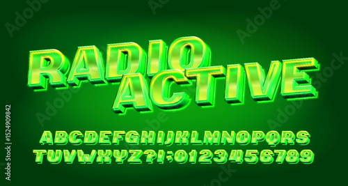 Fototapeta premium Radioactive alphabet font. Green neon 80s style letters and numbers. Abstract...