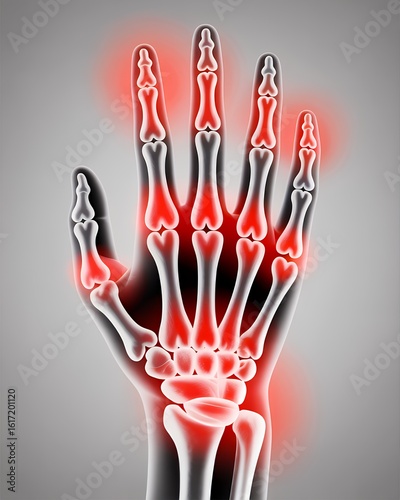 Fototapeta premium Radiographic Illustration of Inflamed Hand and Wrist Skeleton