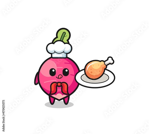 © heriyusuf, Fototapeta premium radish fried chicken chef cartoon character