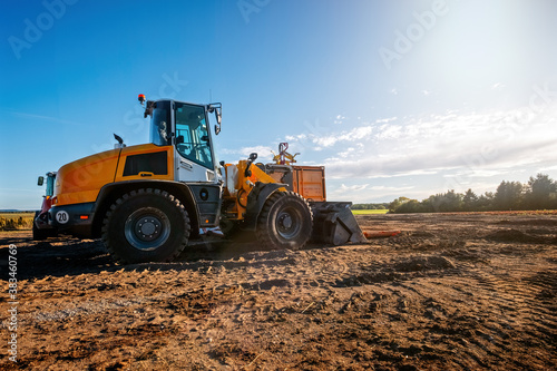 © Superingo, Fototapeta premium Radlader im Gegenlicht