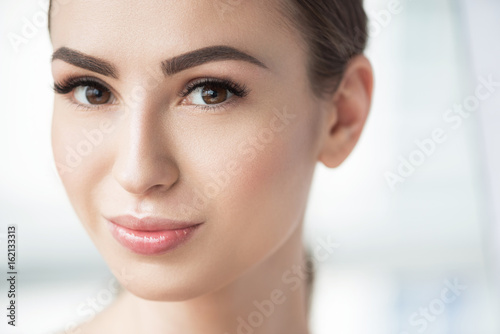 Fototapeta premium Radosna piękna dziewczyna z doskonałymi kosmetykami twarzy
