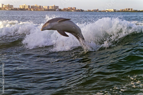 Obraz premium Radośnie skaczący delfin butlonosy w Clearwater Bay na Florydzie