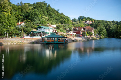 Obraz premium Raft cafe on river Gradac, Valjevo