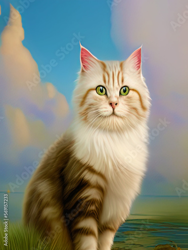 © JohnFord, Obraz premium Ragamuffin Cat Portrait, Generative AI