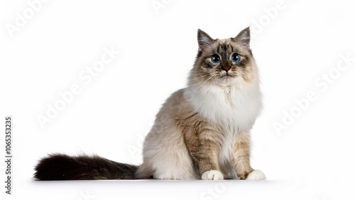 © Sonya, Fototapeta premium Ragamuffin cat sitting on white background.