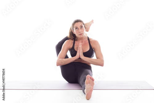 © fabio Bergamasco, Fototapeta premium ragazza bellissima pratica yoga in studio su fondale bianco