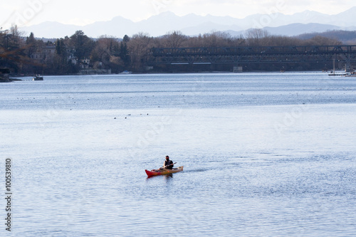 © mazzamazza, Naklejka premium ragazzo in canoa su fiume