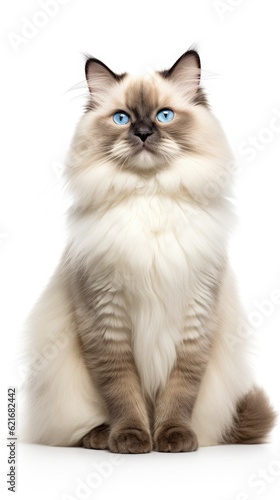 Obraz premium Ragdoll cat sitting on white background
