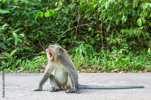 © De Visu, Obraz premium Raging monkey sitting on the road.