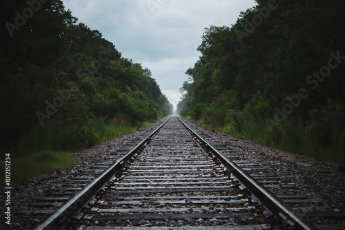 © Vladimir, Obraz premium railroad at dawn, fog on the railroad, empty railroad