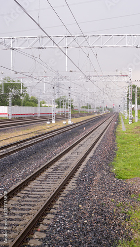 © Timofey, Fototapeta premium railroad in spring rainy day, view from station. background, transportation