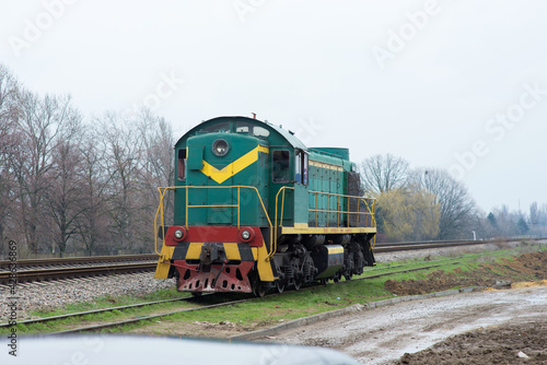 © Ivan, Fototapeta premium Railroad locomotive rides on the railroad without wagons