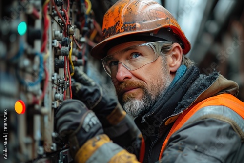 © Create image, Fototapeta premium Railroad Signal Maintenance Team Maintenance team working on signal equipment, showcasing teamwork in the rail industry