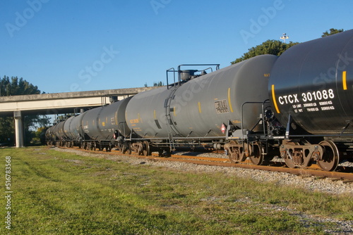 Naklejka premium Railroad tank cars parked on a track under a bridge in Fort Lauderdale,...