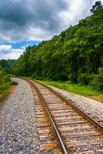 © jonbilous, Fototapeta premium Railroad track in rural Carroll County, Maryland.