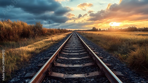 © atar, Fototapeta premium Railroad Tracks at Sunset
