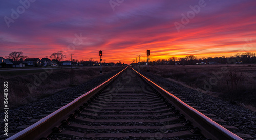 © @ArtUmbre, Fototapeta premium Railroad Tracks at Sunset