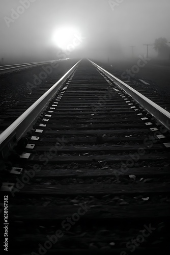 © Ibnu, Fototapeta premium Railroad tracks extending into a foggy distance.