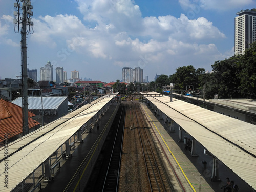 © Hafiz, Fototapeta premium railroad tracks for the commuter line taken from a station