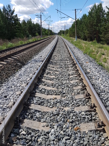 Fototapeta premium Railroad tracks go to the horizon
