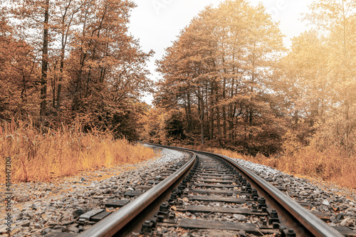 © Andreas Gillner, Fototapeta premium railroad tracks in the forest