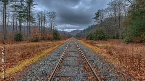 © wisnuromad art, Fototapeta premium Railroad Tracks Leading to Mountains under a Dramatic Sky