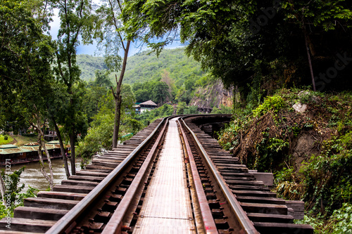 © Chonlapoom Banharn, Fototapeta premium Railroad tracks on a dangerous path