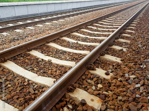 © the_pixel, Naklejka premium Railroad tracks railway empty background.