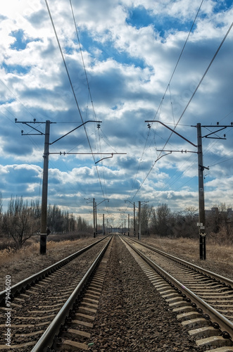 © GPetro85, Fototapeta premium Railroad way with blue sky