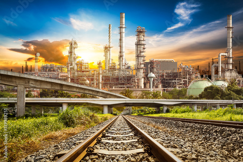 © fotoslaz, Fototapeta premium Railway and road to refinery