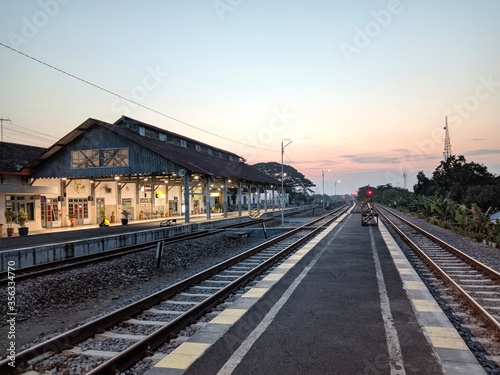 © heri_kriswanto, Obraz premium railway at sunset