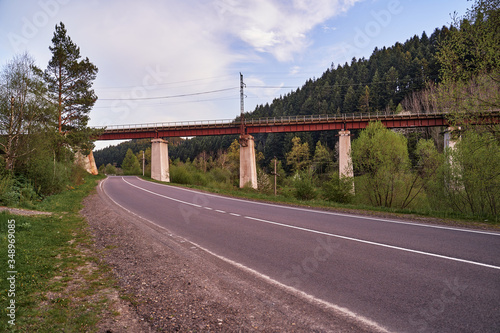 © Катерина Мудра, Naklejka premium railway bridge across the road in the mountains is a beautiful building