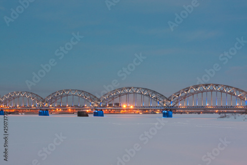 © trancedrumer, Fototapeta premium Railway bridge at night in winter