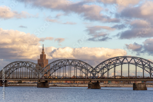 © Vlad Rakin, Naklejka premium railway bridge over daugava